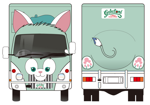 東京ディズニーシー®の人気キャラクター“ダッフィー”のお友だちで、エメラルド色の瞳と長いしっぽが特徴のネコの男の子“ジェラトーニ”。この夏、そんなジェラトーニのふわふわのボディと同じ生地で車体をラッピングした「ジェラトーニ・ワゴン」が新たに登場し、ジェラトーニの描いた絵を載せて全国21都市を巡る「ジェラトーニの旅するアートギャラリー」を、2016年7月30日(土)から開催する。