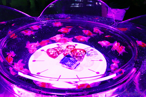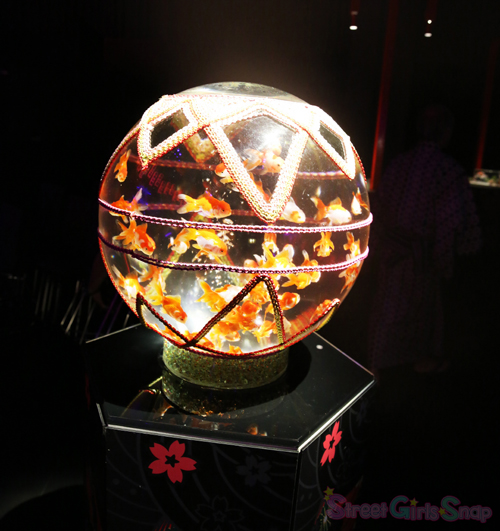 会場は江戸の花街をテーマに、空間は「金魚小路(きんぎょこみち)」「水戯の舞台(すいぎのぶたい)」「江戸切子の間(えどきりこのま)」「ビョウブリウムとアクアリウムバー」の4つのエリアに分かれ、史上最大の金魚鉢作品「超・花魁」が今回の一番の見所に。