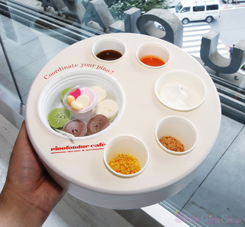 ピノフォンデュを彩る、全6種類のトッピングからお好みの2種類を選択。