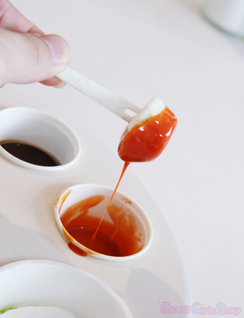 チョコソースW付けはもちろん、トッピングで文字を書くも良し、チャームの「モナカ皮」にピノを乗せたりなど、思いのまま♪
