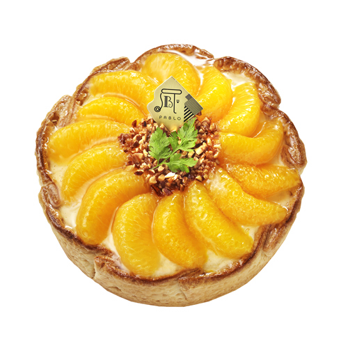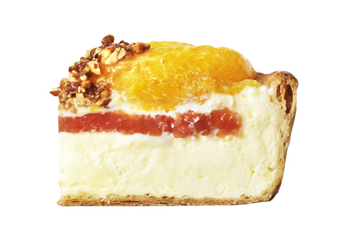 イタリア・シチリア産のブラッドオレンジのクラッシュゼリーにカスタードクリームを重ね、ジューシーなオレンジをまるでひまわりの花びらのようにあしらっている。チーズタルトの中心にキャラメリゼしたアーモンドをのせ、まさにひまわりそのもの。