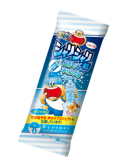 ガリガリ君発売35周年目の今年、新味として「スポーツドリンク味」がシャリシャリ君で初登場。“かじる”ガリガリ君が“吸う”シャリシャリ君に変身した本商品は、ガリガリ君の真ん中のシャリシャリ食感の微細かき氷部分だけを吸うタイプのブロー容器に閉じ込めた、新しい食感が味わえると2012年に関東と東北のコンビニ限定でテスト販売し、2013年悲願の全国販売へとこぎ着けた伝説の吸うタイプのガリガリ君。