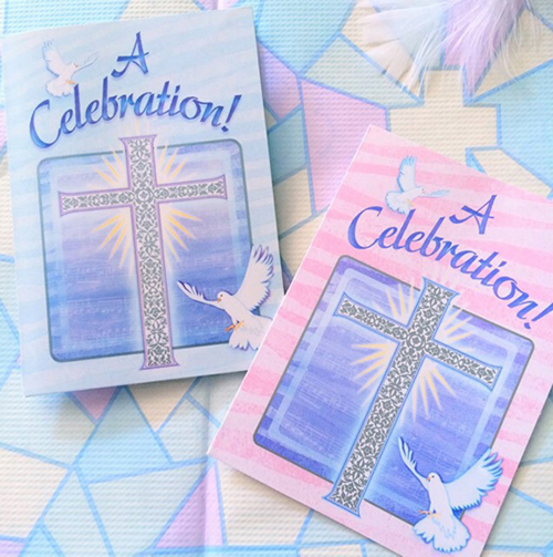 十字を中央に、平和の象徴“白い鳩”をデザインした、グリーティング。
