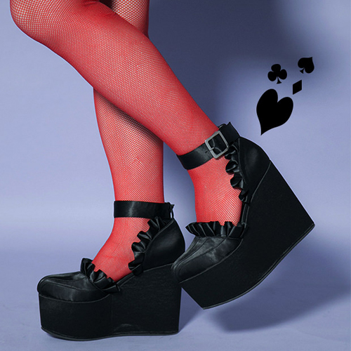 ヒラヒラのフリルがついたスイートな表情を演出する2016AW新作パンプス。ボリューミーなウェッジソールにアンクストラップで脚を固定し歩きやすさも重視。