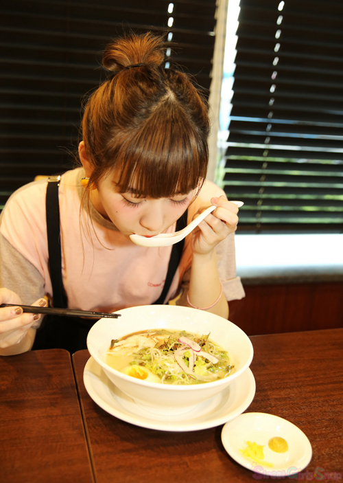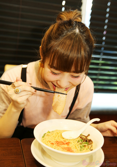 また、女の子が特に嬉しいのは、バーミヤンがレストランということもあって、ラーメンは好きだけど一人ではラーメン専門店に入れないって子でも気軽に入れちゃうところ。そんなバーミヤンで本格ラーメンが味わえるとあって一足早く、ラーメン大好きな原宿サントニブンノイチのスタッフ<いくみ>ちゃんに、その美味しさを初食レポしてもらっちゃったよ!