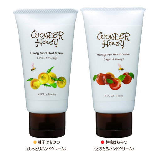 この冬限定の2つの香りが登場。手肌しっとり贅沢な潤いの人気アイテム。「柚子はちみつ」は、コクのある感触でリッチな潤いのしっとりしたクリームタイプ。「林檎はちみつ」は、とろとろの使用感ながらかろやかな感触のジェルクリームタイプ。