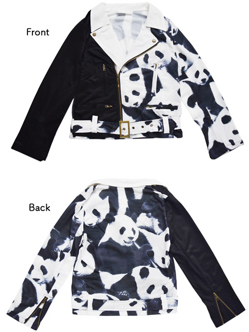 パーカ同様に総柄パンダを使ったライダースは、可愛いだけの見た目にハードをプラス。モノトーンコーデも、これだけパンダが主張されてると、可愛さの方が際立っちゃう!