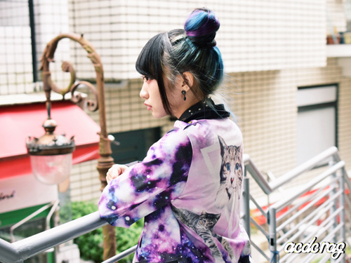 どの型を作っても常にトップレベルの人気を維持するアンジ。今回ブラックとあわせて宇宙柄に深さをもたらした。モード系が好きなひとへもオススメできる、落ち着いた雰囲気に仕上がった宇宙猫ライダース。