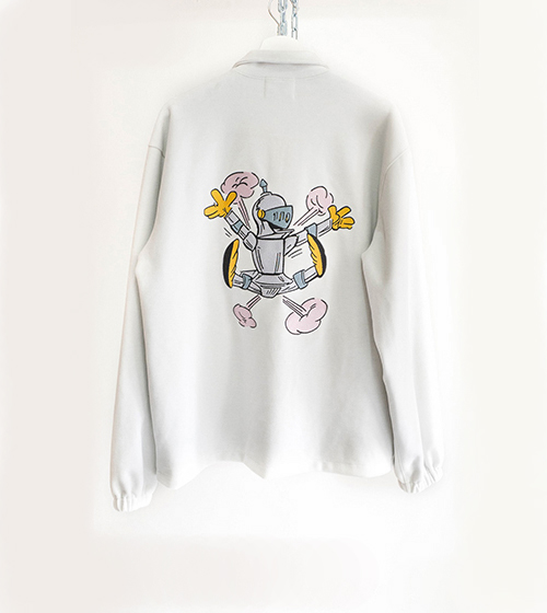AOのリバーシブルスカジャン。表はサーモンピンクで、裏側はホワイトの高級感あふれる1着。