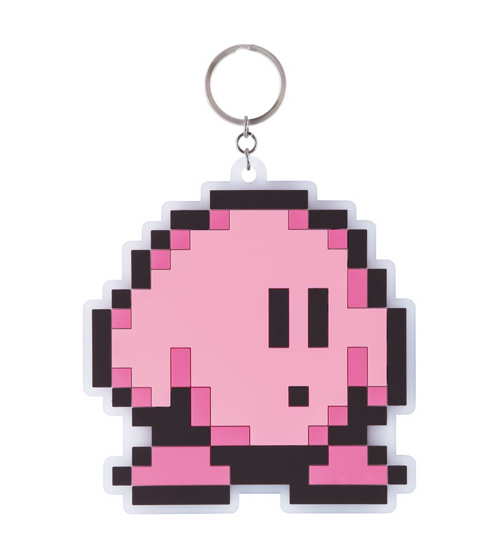 約11cmのカービィと、回復アイテム「マキシムトマト」をドットでデザインした、ビッグサイズのラバーキーホルダー。2種類から好きな方が選べるよ!