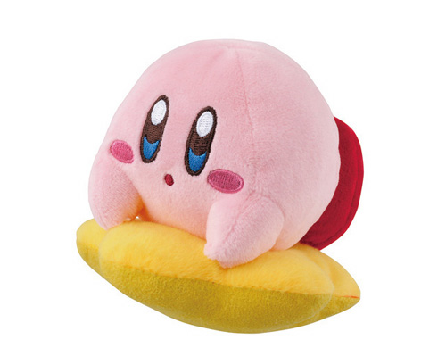 約9cmある「ワープスター」に乗ったカービィのぬいぐるみ。机など身近な所に飾りやすいサイズ。