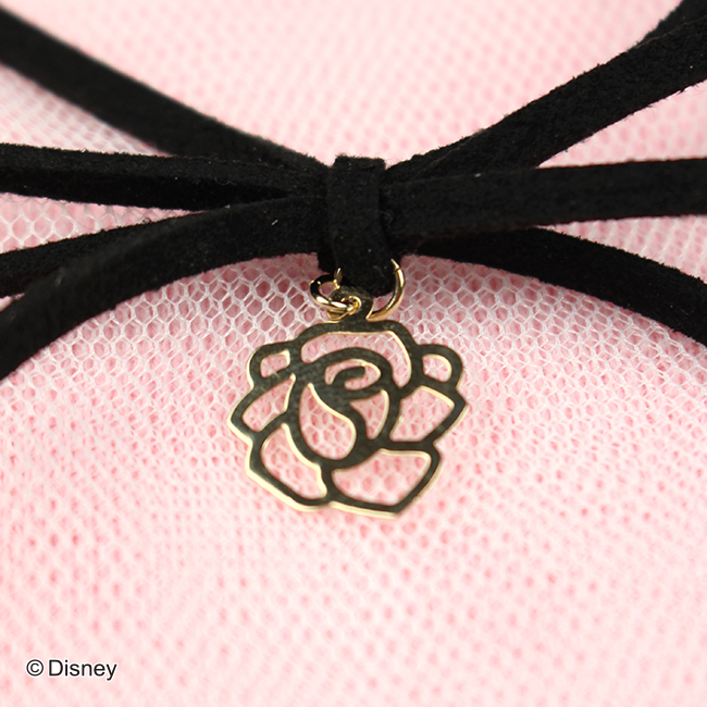 ディズニープリンセスモチーフのチョーカーは、ジャスミンのランプ、アリエルの貝殻、ベルのバラ、ラプンツェルの魔法の花の4種類。さり気ないワンポイントキャラディネートに。