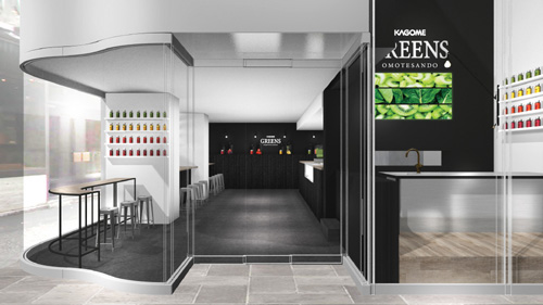 表参道の大通り沿いにスタイリッシュなモノトーンの店舗を展開予定で、店舗内は野菜や果物を食べる感覚でジュースを楽しめるよう、開放的なオープンキッチンを設け専門スタッフによって下ごしらえされた野菜やフルーツを使い、オーダーに合わせてその場で、野菜飲料を作製。