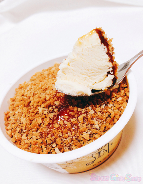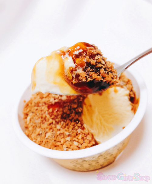 ちょっとアイスが溶けた頃合いになると、カラメルソースがアイスに絡み合って、ブリュレ感がアップ。