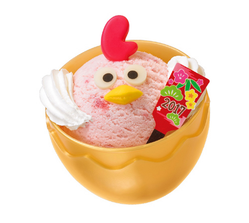 2017年は干支にちなんで「とり」が年末年始限定で登場。好きなキッズサイズのアイスクリームに、目、くちばし、そして真っ赤なトサカをチョコレートで、ぴょこんっと飛び出したかわいい羽は白いホイップでトッピング。小さな羽子板を持たせたら、気分はすっかりお正月気分!
