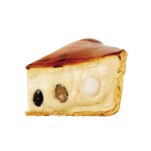 新年にふさわしい“黒豆”を使用したチーズタルト「焼きたて黒豆きなこチーズタルト」は、各店舗の新年初売り日より、きなこや黒蜜、白玉と、おせちにも使用される黒豆を使ったお正月雰囲気をイメージしたチーズタルト。