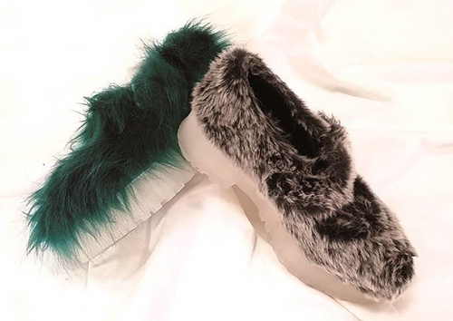 今季A/Wのトレンド“ファー”があしらわれた厚底シューズと厚底サンダルは、7.5cmのソールと毛足の長めのファーが、ジェフリーらしい。