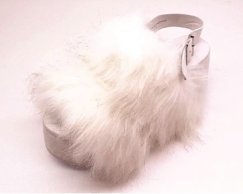 今季A/Wのトレンド“ファー”があしらわれた厚底シューズと厚底サンダルは、7.5cmのソールと毛足の長めのファーが、ジェフリーらしい。