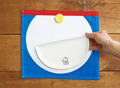 おなかランチョンマットに、四次元ポケット皿と鈴箸置きをのせるとドラえもんの完成!
