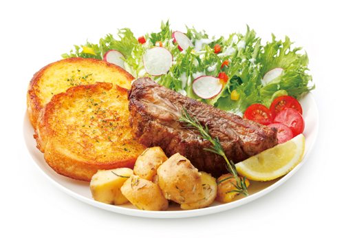 また、フードメニューも充実。食欲の増す時期に迫力のあるスペアリブに、ジャークスパイシソースをもみ込んで 焼き上げた「スパイシーポークリブ」。添えているアンデスポテトには、ローズマリーのハーブバターで香り良くソテーし、ジューシーなスペアリブとの相性も抜群。フレンチトーストとも良く合う、力強い味わい。※写真はフレンチトースト2枚。