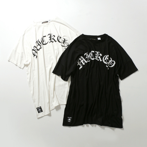 ワンピース丈で身幅もゆったりデザイン。さりげない「MICKEY」の文字がクールな印象。裾タグにも「ミッキー」のプリント!