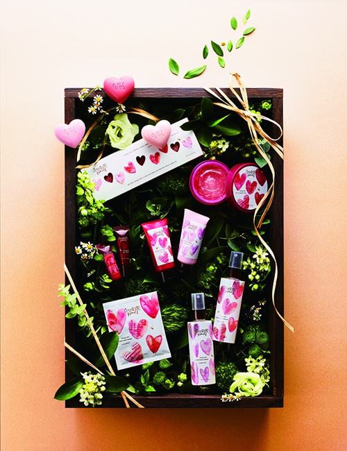 蜜蜂の森には、もぎたての果実のようなジューシーなハートが実る。「ジューシーロッソ」は、黒すぐりやブドウ、ベリー、シトラスでつくる果実酒のような芳醇なフルーティーアロマ。「スイートロゼ」は、スイートピー、ライラック、ベルガモット、グリーンを合わせたフローラルフルーティーアロマ。