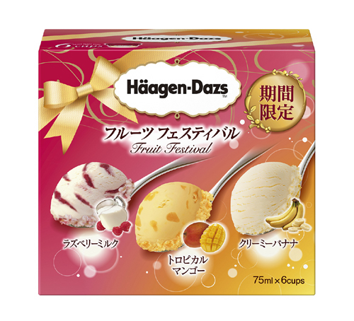 マンゴー・ラズベリー・バナナのフルーツたっぷりな詰め合わせ!ハーゲンダッツから3つのフレーバーがセットになったマルチパック“フルーツ フェスティバル”限定登場!