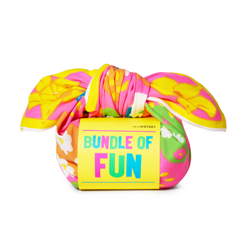 ボディソープ、固形シャンプー、バブルバスとして全身に使え、粘土のように遊ぶ事もできるクレイソープを繰り返し使える風呂敷からインスパイアされて生まれたKnot Wrapでラッピング。