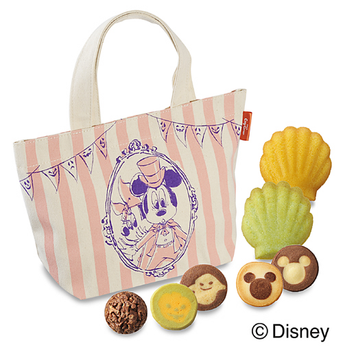 表はミッキー&ミニー、裏にはミニーをデザインしたキュートなトートバッグ。中にはマドレーヌやクッキー、チョコクランチ入り。
