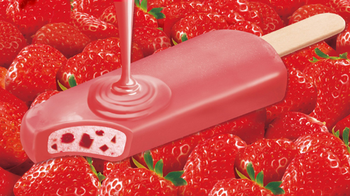 本商品は、いちご果肉入りアイスを独自技術のなめらかな濃厚いちごで包みこんだ、いちごづくしの濃厚フルーツバー(果汁・果肉60%)。