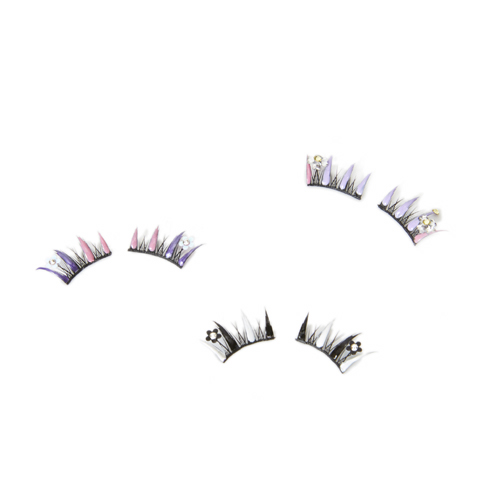 目尻にキラキラ光るクリスタルフラワーがデザインされた、ゴージャスでキュートな付けまつげ。クリスタルの意味や、コスモスの花言葉である“純粋・無垢な優しい美”をイメージした透明感あるハート型の花びらが特徴。