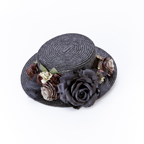 避暑地で楽しむ貴婦人をイメージし、造花を豪華に飾り付けたカンカン帽。
