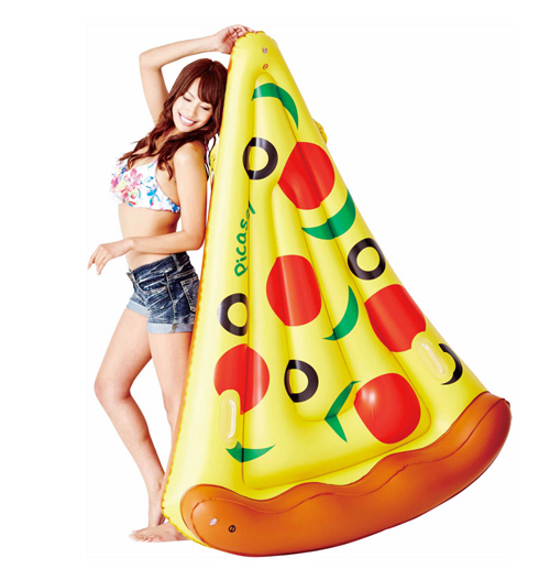 ビーチの視線が集まるおいしそうなピザ型フロート。