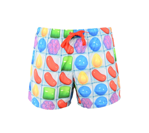 水着(ボクサータイプ)は、おしり部分にキャンディークラッシュ風の“Moschino”のロゴが入った、遊び心のある1枚に仕上がっているよ。