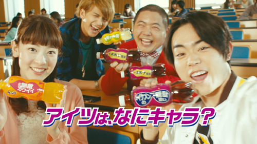 「グレープ」、「オレンジ」、「レモン+C」の基幹フレーバーで展開される「ファンタ」みんなのキャラボトルを使って仲間をキャラづけする“ノリノリ大学生”菅田将暉にご注目しちゃって!