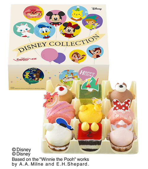 下段左から、「ドナルドダック」ブルーベリージャム入りチーズクリームのタルト、「ミッキーマウス」ホワイトチョコクリームとココアスポンジのケーキ、「ディズニー マリー」苺ジャム入り苺風味チーズクリームのタルト