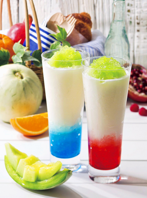 今回の新商品「トリコロール・グラニータ」(メロン&レッドベリー/メロン&ブルーシトラス)は、旬を迎える“メロン”に相性ぴったりな乳酸菌飲料のテイストをプラスした、これから始まる“じめじめ”とした梅雨シーズンの不快感を吹き飛ばすような爽やかオリジナルグラニータ。味わいと彩りのアクセントとして色鮮やかなベリーとシトラスのフレーバーをそれぞれのグラスの下に閉じ込めている。