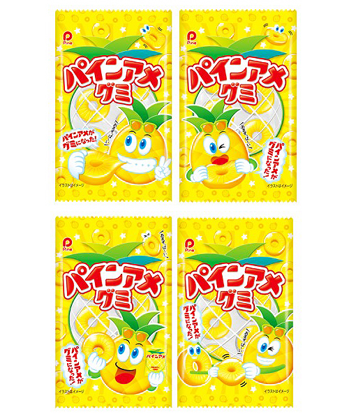 パインアメは昭和26年に発売し、今年で64年を迎えるロングセラー商品。今回新たなチャレンジとして要望の多かった“グミ”を開発。甘酸っぱくてジューシーな味わいはもちろんのこと、パインアメのアイデンティティでもある輪切りのパイナップルの型にもこだわった。パッケージも4種類展開し見た目にも楽しく仕上がっている。