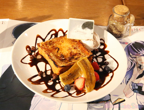 カネキがパンにコーヒーをまぶした場面を再現したアイス付きのフレンチトースト。コーヒーシュガーをお好みでふりかけて食べてね。でも、コーヒーの風味でごまかさないでくださいね・・・