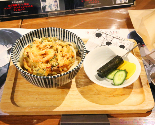 亜門が勤務後に食べたうどんをイメージ。クインケ風ソーセージもつき、ボリューム満点!場面カットカード付きだよ。※場面カットカードはお持ち帰り頂けません。