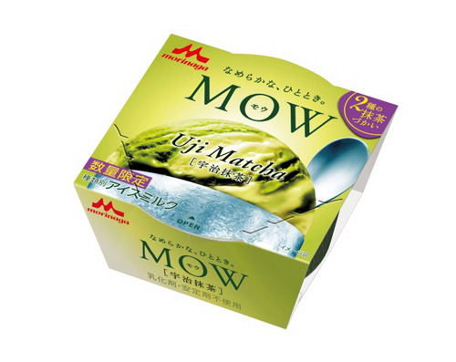 「MOW(モウ) 宇治抹茶(数量限定)」は、宇治抹茶の奥深さが楽しめるよう、品質本位の茶づくりに定評のある丸久小山園の“まろやかな旨み”が特長の蔵出し抹茶を使用した緑色の宇治抹茶アイスと、森永乳業がこの商品のためだけに調達した“芳しい薫り”が特長の焙煎抹茶を使用した薄緑色の宇治抹茶アイスの2種類を混ぜ合わせた宇治抹茶の奥深い世界が堪能できる逸品。