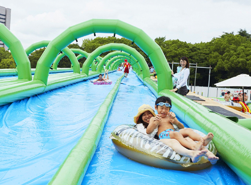 本イベントは、ハウステンボスの夏のメインコンテンツでもある「水の王国」を大阪城公園に再現。多様なウォータースライダーやプールで、子供から大人まで幅広い年代に楽しめる夏限定の催し。今年の注目は、ジェットコースターのような急降下と急上昇を体験できる、新感覚の「ブーメランスライダー」が新登場!