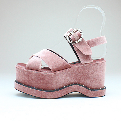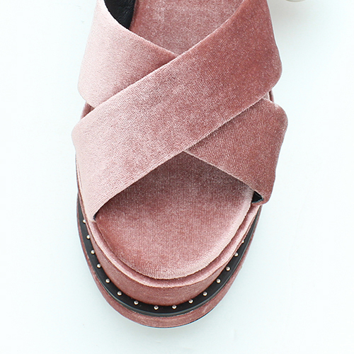 本シューズは、この秋冬のレンド素材の一つでもあるベルベットを使った、光沢や質感が美しい厚底サンダル。カラーはベーシックに何にでも合わせやすいブラックと、クラシックなカラーリングが可愛らしいピンクの2種類。