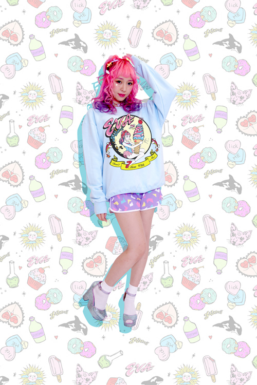 発売日当日の12:00〜よりevaちゃんプロデューススウェットをお買い上げ頂いた方先着で、今回のイメージ写真を撮影したシチュエーションでevaちゃんと一緒に写真撮影&サイン会を開催。また、evaちゃんコラボTシャツをお買い上げ頂いた方はevaちゃんから直接サインを差し上げます!こちらも写真撮影会と同時進行で行われますので、Tシャツをお買い上げ頂いた方に整理券をお渡し致します。