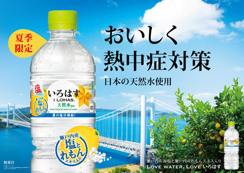 「い・ろ・は・す 塩れもん」は、厳選された日本の天然水に、こだわりの瀬戸内産海塩と瀬戸内産れもんエキスを加えたフレーバーウォーター。さわやかさの中にしっかりとした甘さのあるれもんの味わいと海塩の絶妙な塩の味わいを組み合わせている。