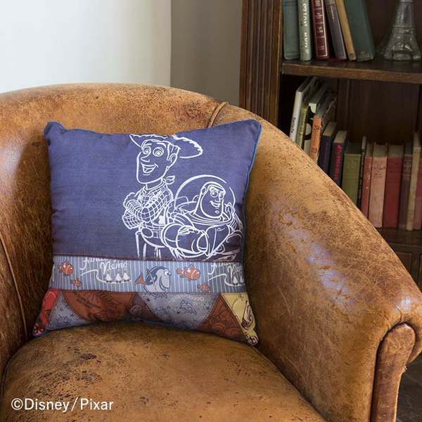 「トイ・ストーリー」「ファインディング・ニモ」「モンスターズ・インク」「カーズ」の4作品をモチーフにデザインした、デニム風のスペシャルクッション。