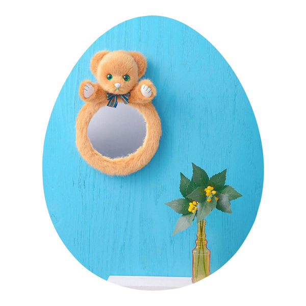 テディベアモチーフの壁掛けミラー。ベアの裏面に紐の輪っかがついてて、フック等に引っ掛けて壁に飾ることができる。カラーリングも豊富だから、自分のお好みのコを連れて帰ってあげて♪