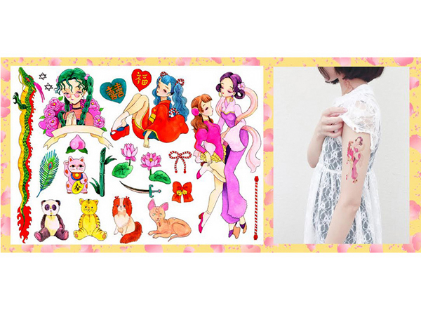 日本やチャイナなどアジアモチーフの、ポップなタトゥーシール。