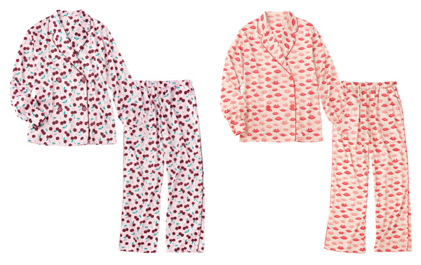 女の子が大好きなモチーフである、チェリーやリップの柄を使用したサテンパジャマ。トップのフロントボタンはダブルボタンで、ボトムのサイドはラインを効かせているため、I字型のシルエットがきれいに出る。ルームウエアとしてはもちろん、トップとボトムをそれぞれ単体でコーディネートに取り入れて外で着用するのもオススメ。
