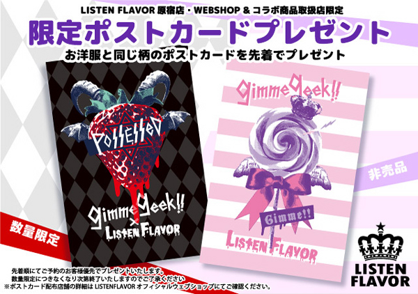 [特設ページ スマホ]gimme geek!!×LISTEN FLAVOR ノベルティポストカード 特設ページ